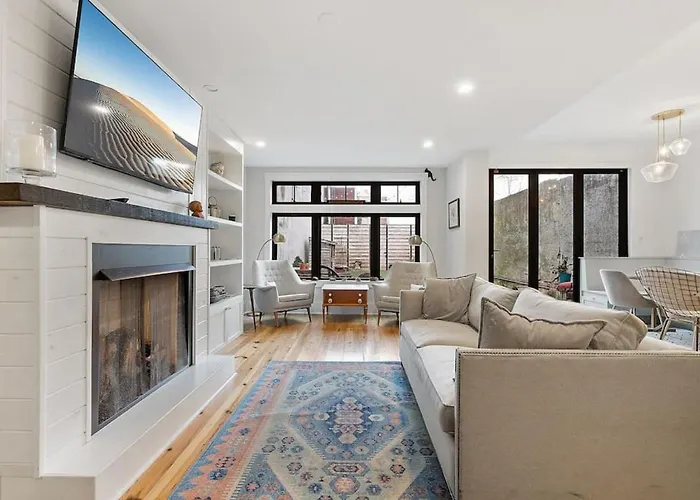 Das Designer 3 Bedroom Townhome With Beautiful Backyard ist der ideale Rückzugsort für Reisende, die Philadelphia erkunden möchten. Inmitten der pulsierenden Atmosphäre von South Philadelphia gelegen, besticht es durch stilvolles Design und Komfort.